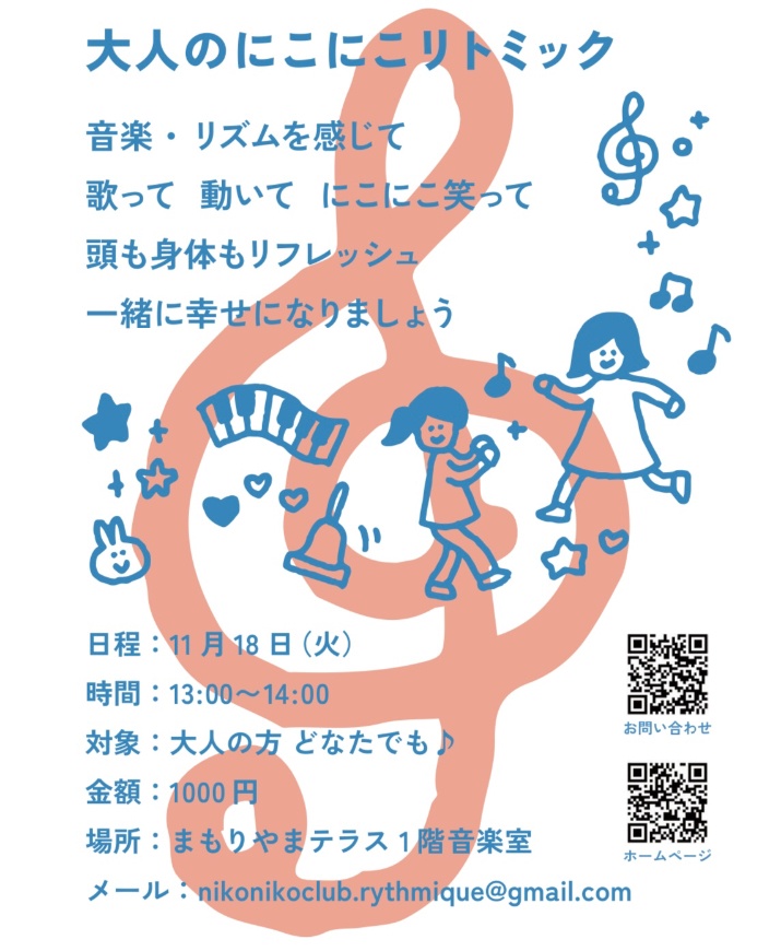 日本シニアの為のダルクローズリトミック研究会に所属し、中明佳代先生のもと一緒にリトミックを勉強している、私の他 3名の先生との共同開催となります! とても優しく楽しい先生方です🙂